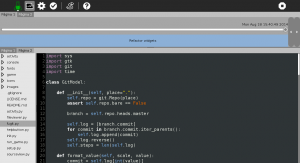 Sin embargo para mí, el uso de Git en la terminal es todavía demasiado obtuso para poder enseñarlo efectivamente a niños. Los conceptos en sí son simples, pero la abstracción se me hace demasiada. Por eso es que empecé el desarrollo de una actividad de Sugar que facilite visualizar el historial de un proyecto, y en general trabajar con git. Mi principal inspiración es "Gitg" para gnome, pero me interesa realizar un trabajo de simplificación de los flujos de trabajo que se necesitan en el contexto de un taller de Python, como los que describe Katie.